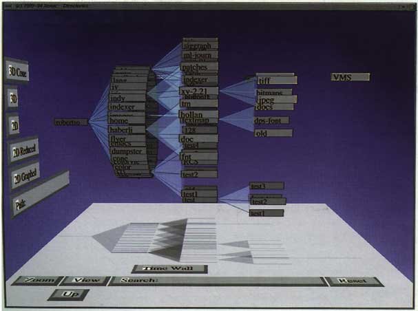Figure 1 shows some commonly used visualization paradigms (from top to bottom / left to right): control flow graphs, polymetric, treemaps, hyperbolic trees, euclidean conetrees, and citylizer. Each particular visualization paradigm is properly recommended for analysing a specific data type (2D, 3D, hierarchical, etc) and provides different navigation functionalities.